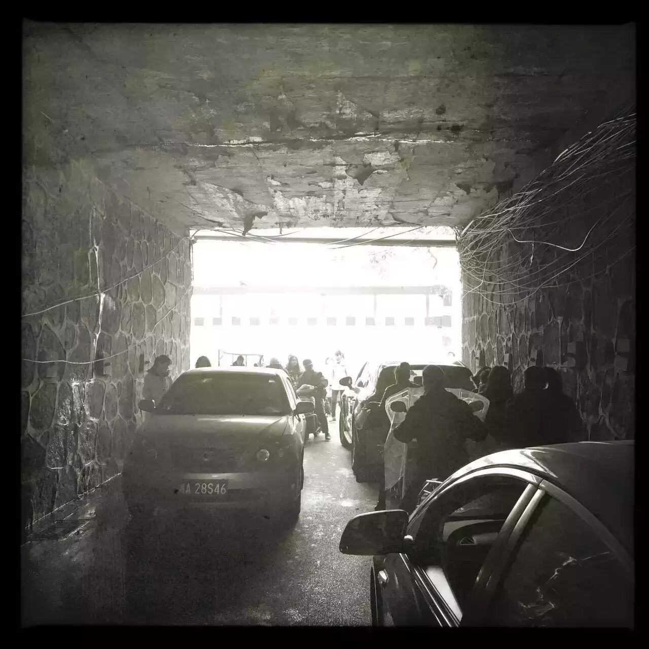 每逢下雨,涵洞就被戏称“水帘洞”。有次下暴雨,涵洞的积水淹没过膝盖,为了寻找最佳角度,等候打伞的市民经过被淹没的涵洞,我一蹲就是半个小时,拍到这张照片之后心里暗自窃喜,现在看来,照片上的拍摄对象当时可能有些不堪。我的车牌被雨水刮走,不得已下车打捞,对我而言,平淡的生活经历些不堪,也是生活的一种。