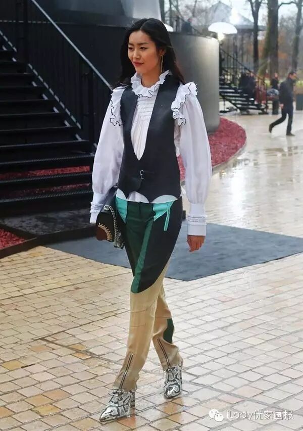 “大表姐”身着颇有中世纪风的荷叶边衬衫配马甲亮相巴黎时装周,好似骑士般飒爽帅气,攻气满满。