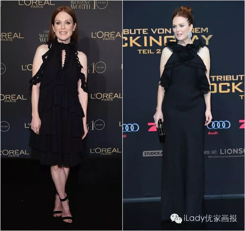谁说荷叶边就不适合熟女了呢?影后Julianne Moore身体力行地告诉大家,低调的颜色是关键,小面积地运用荷叶边更能增添女人味哦。