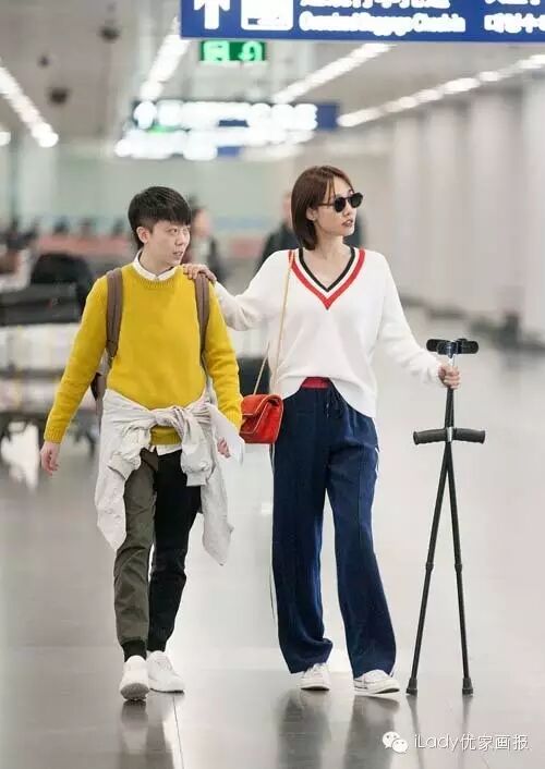 无独有偶,白百何也爱上了这种穿法,V领针织衫与运动裤的结合轻松流露出那种毫不费力的时髦,舒适又随性。