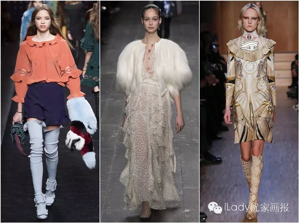 左起:Fendi 2016秋冬系列,Valentino 2016秋冬系列,Givenchy 2016秋冬系列