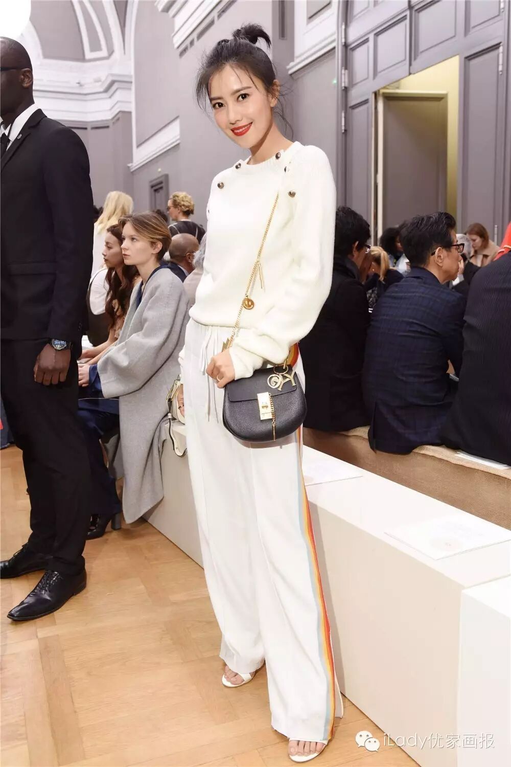 圆圆出席巴黎时装周时,便是针织衫+运动裤的组合大展慵懒风情,裤缝的彩虹线条也让这身纯白多了分俏皮。