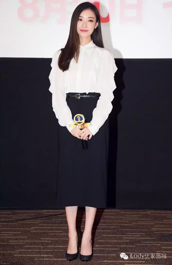 倪妮的功力也不低哦,清爽的荷叶边衬衫很是清新,却用简约直筒半裙彰显知性大气。