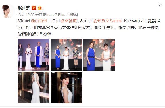 我们的冻龄女神芝姐也动情地发微博感慨:“这次出席第 23 届釜山电影节,可以天天相聚, 大家都更亲密了,好珍惜!”(报告:芝姐太美了,申请舔屏!)