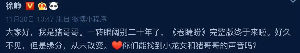 片尾曲《卷睫盼》宣布重录的时候,徐峥自己发了一条微博,开口第一句话是: