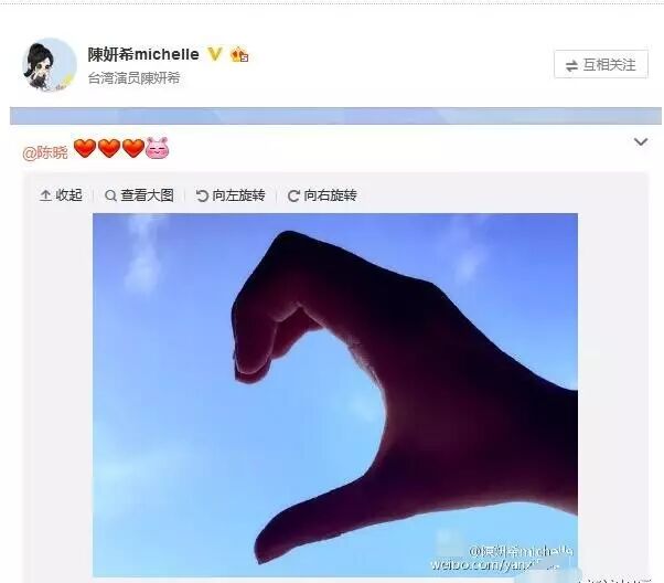 2015年8月27日,陈晓发微博承认了与陈妍希的恋情,称:总有一天,你会跟我姓。用一张手比心照片作为配图并艾特了陈妍希,随后陈妍希也发微博艾特陈晓同样配图用手比另一半心,两个半心拼起来正好是一个完整的心。陈妍希已被曝接受陈晓求婚。