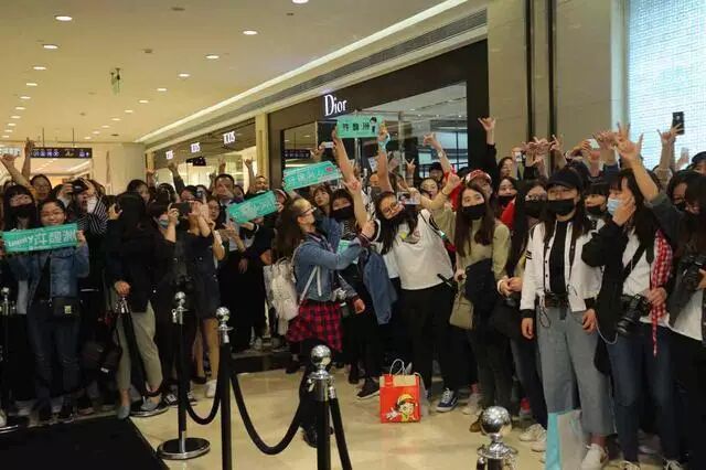 当天纪梵希武汉国际广场店门外围堵了疯狂的洲洲粉丝,不过见到洲洲一眼,她们都超级激动。喏,洲洲粉丝们当心安全哦~!