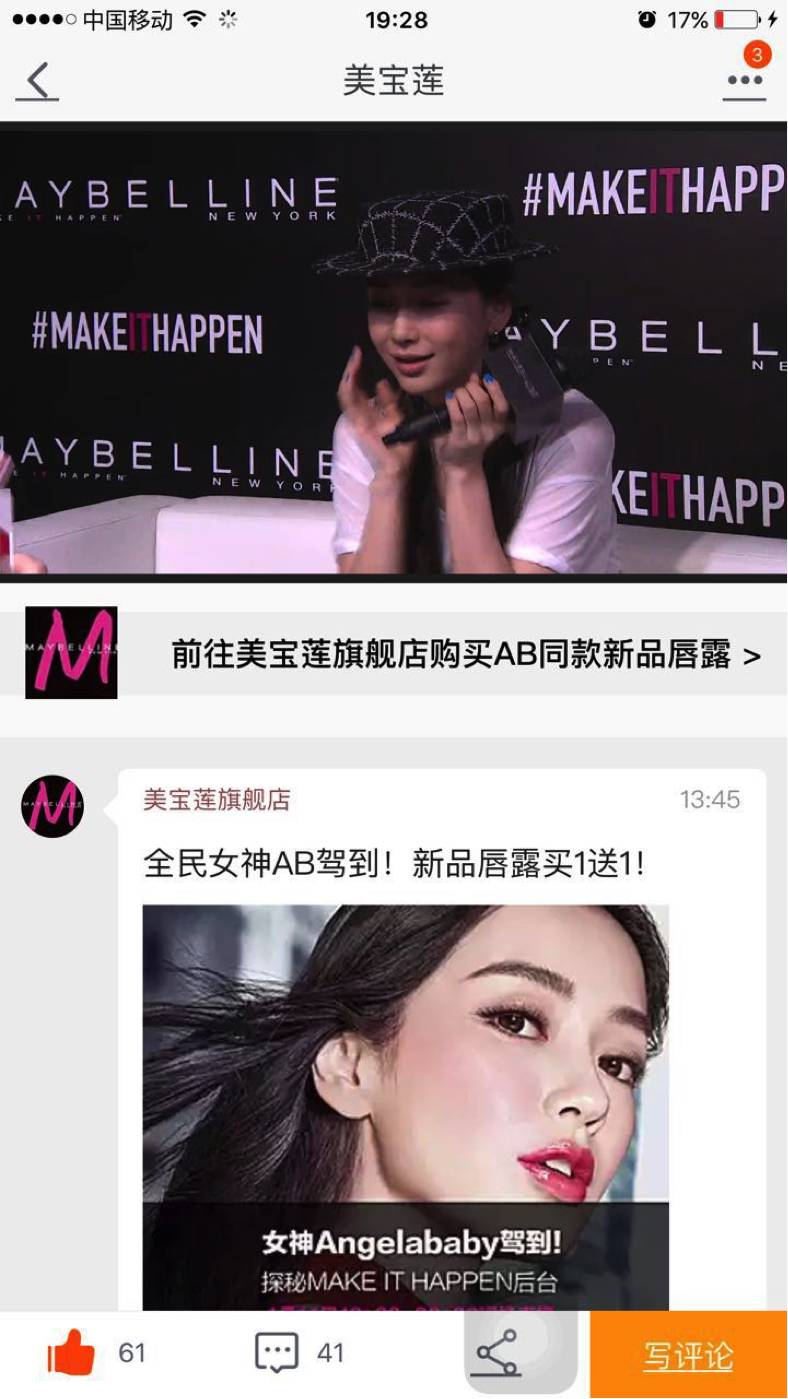 美宝莲纽约全新代言人-Angelababy美拍直播