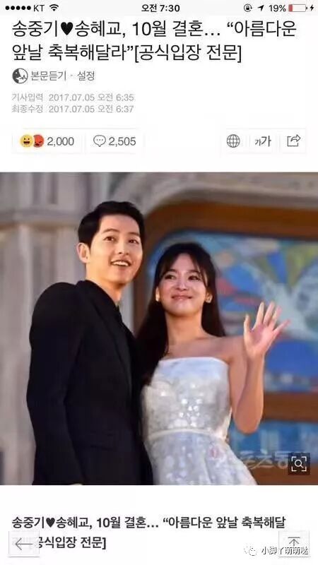 35岁的宋慧乔与31岁的宋仲基因拍摄《太阳的后裔》相识,该剧播毕后,屡次传出两人热恋,但双方仍以仅是好朋友否认。上个月,韩国媒体也爆出他们同游峇里岛,不过经纪公司予以撇清,直到5日早晨,宋慧乔与宋仲基通过经纪公司宣布结婚喜讯,震惊不少人。