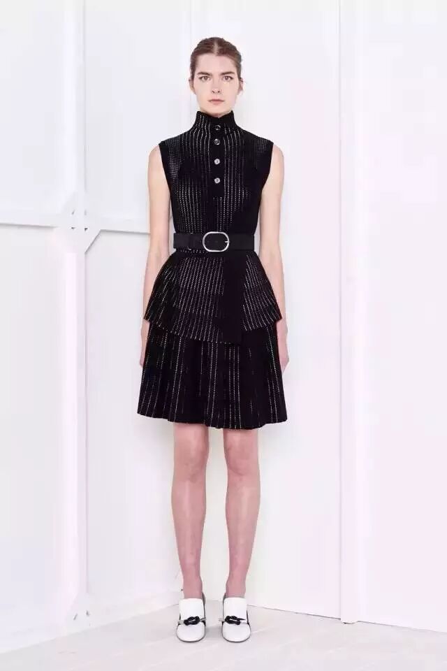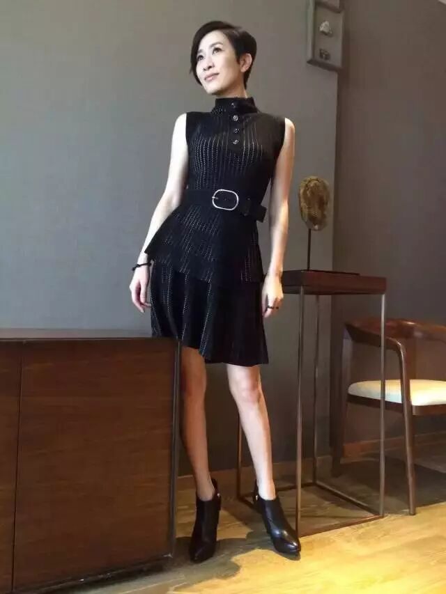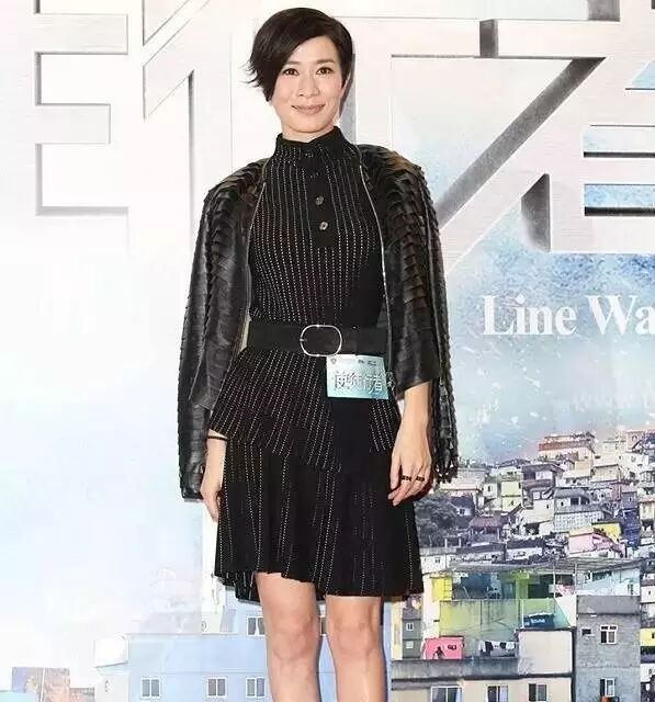 佘诗曼身穿 SPORTMAX2016最新春夏系列出席《使徒行者》开镜拜神仪式,以配有荷叶边点缀的上衣,搭配同面料的半身裙,再于腰间束上腰带,穿出超显瘦的效果。