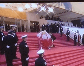 好了,美够了,也累了,最后她以皇后的姿态让人搀扶退场。而背对着她的法国记者依然毫不知情。