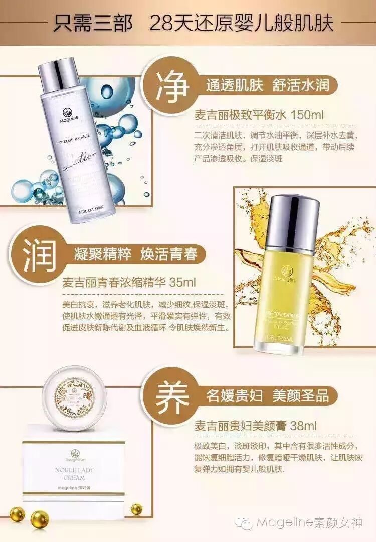素颜三部曲为法国magline品牌顶级高端修颜套装,极致复活成熟肌肤,紧致白透不用妆,缔造素颜轻肤时代概念。以良好的口碑及专业评测高分迅速热销港台演艺圈及高级美容会所,受到众多名媛及爱美人士认可追捧。