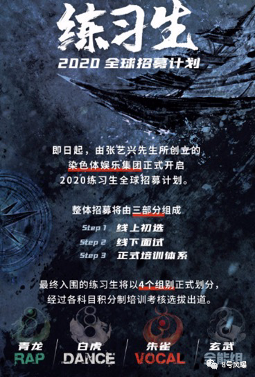 在招募练习生的宣传片中,张艺兴用中国古代神话四方之神的意象,来指代每一种技能。