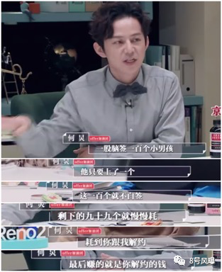 何炅就曾爆料:有的经纪公司一下子签一百个练习生,只要一个火了,其它99个就耗着。