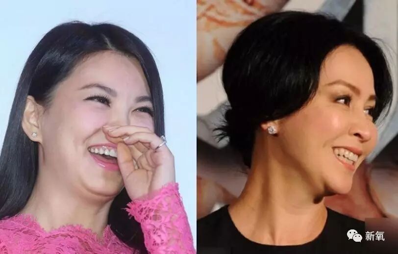 其实平时稍微观察一下,就会发现,下巴和脖子的分界不鲜明的人,总会给人一种懒懒笨笨的感觉。就拿李湘和刘嘉玲来对比一下,同样都是双下巴,比气质的话,刘嘉玲以稍微清晰的下颌线,略微取胜了。