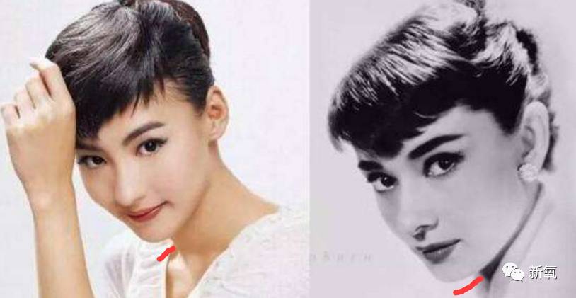 美丽的下颌骨是方而不刚的,最主要的是,下颌和脖子交线明显。仔细看赫本的脖颈处,光影很重,脖子离下巴尖的距离也比张柏芝长,这也是略带婴儿肥的张柏芝看起来比较“幼齿”,而赫本看起来比较优雅的原因。