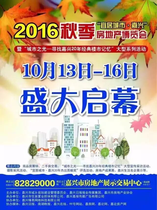 此次房博会上将囊括在嘉兴有项目的大部分优秀房企,参展房企将拿出手头的优质房源,各大房地产商也会在年后期这场盛会上将所有“积蓄”全都展出,再不抓紧机会,今年可能就真的“买房难”了!本周四, 10月13日至16日(周四至周日),我们等你一起来狂欢!