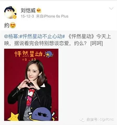能看到的他最后一次微博上的互动是2015年刘恺威转发杨幂的微博帮妻子宣传《怦然星动》的时候了。