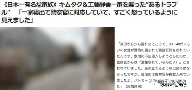 据日媒报道,木村拓哉的宅邸在不久前遭遇了疯狂粉丝的非法入侵,周围的邻居目睹了这一幕,在接受采访时说到有一名30~40岁左右的女性在附近徘徊,随后被警察拦住盘问是否想要非法闯入私人住宅,随后又陆续来了许多警察与警车。