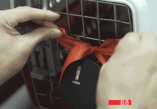 洲洲把在笼子上系上了个美美的蝴蝶结,