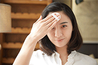 ➃ 最后,细节不能放过,在黑眼圈和瑕疵处重点按压,完美遮瑕