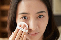 ➀ 使用粉扑,轻轻均匀按压全脸