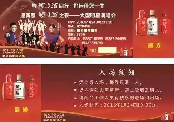 购买柔和系列种子酒一件,即送价值580元由乌兰图雅领衔的“迎新春·种子酒之夜大型明星演唱会”门票一张!