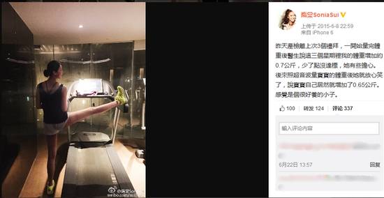 但要注意,一定不要刻意节食哦!即使是运动+健康饮食的隋棠,体重也增长了13公斤多,保持孕妈和宝宝的健康才是最重要的!