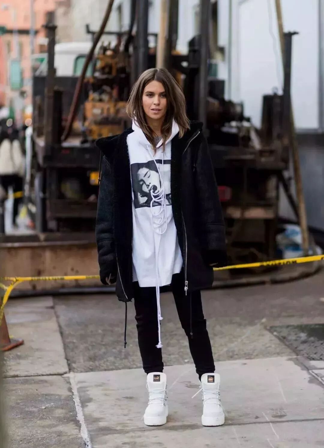无帽卫衣也可以当T恤穿,搭配在外套里面不会臃肿。人像T恤还能让你帅得轻松不费力~