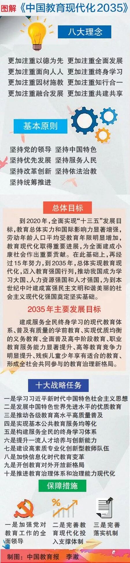 《中国教育现代化2035》聚焦教育发展的突出问题和薄弱环节,立足当前,着眼长远,重点部署了面向教育现代化的十大战略任务: