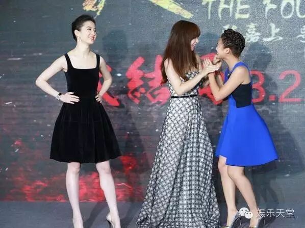 《四大名捕》发布会上的黑丝绒小礼服,自动忽略三个铝孩纸的仪态哟~