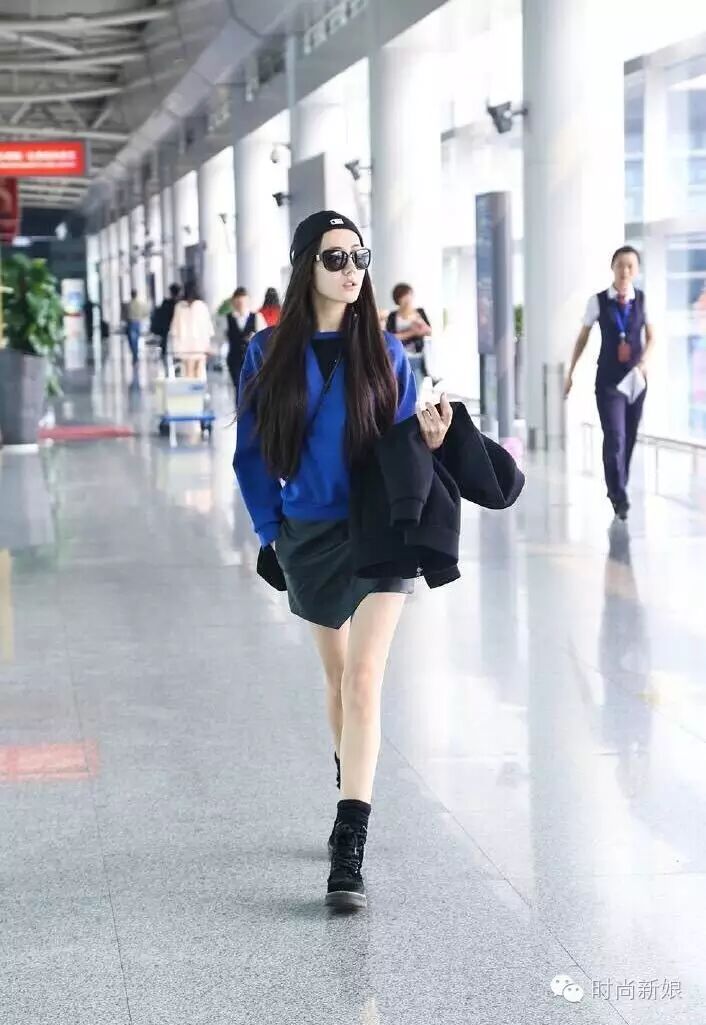 即便成名的胖迪,私下也是很低调的,服装大部分以简洁为主,宝蓝色的上衣搭配黑皮裙,帅气性感,又凸显她笔直的美腿!