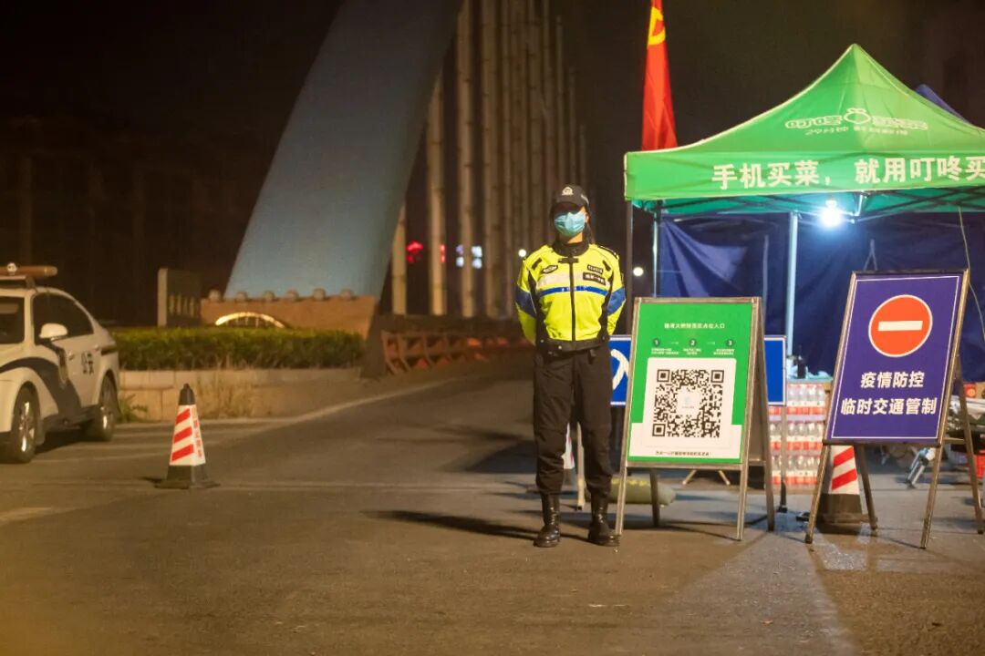 3月13日起,公安机关交通管理部门封闭乾元镇防范区所有道路出入口,仅留2个疫情防控卡点,而陈昊所在的乾元大桥卡点就是其中一个。乾元镇西面车流量大,早晚高峰都有不少车辆和人员,夜间也是不间断。刚上岗10分钟,一名带有外地口音的大姐驾车一定要通过卡点。“我跟导航走的,其他路我不认识啊!”陈昊在询问了大姐的目的地后,耐心向其解释防疫要求后,在导航上帮她重新规划新的绕行路线并仔细告知,大姐这才安心地调头离开了卡点。“叔叔,阿姨你们头盔要戴起来。”凌晨5点,卡点上陆续来了几名打扫卫生的环卫工人,驾驶电动自行车却没有佩戴安全头盔,在详细核查完他们的信息后,她总要再唠叨一句。