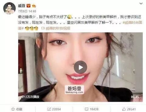 做为小lucky的妈妈,戚薇本人,除了明星身份以外,还有一个身份,就是美妆博主,在微博上的各种化妆小视频很受网友欢迎。