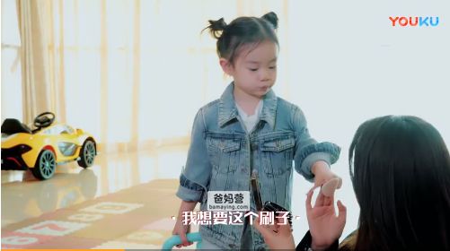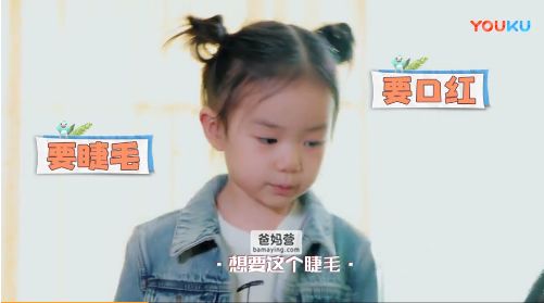 在被问到长大想做什么的时候,她立马回答:化妆品。