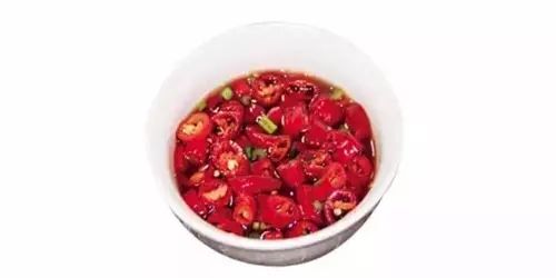 此味汁辣度会偏高,所以可以将小米辣的用量降低至40克,小泰椒的用量降低至15克。