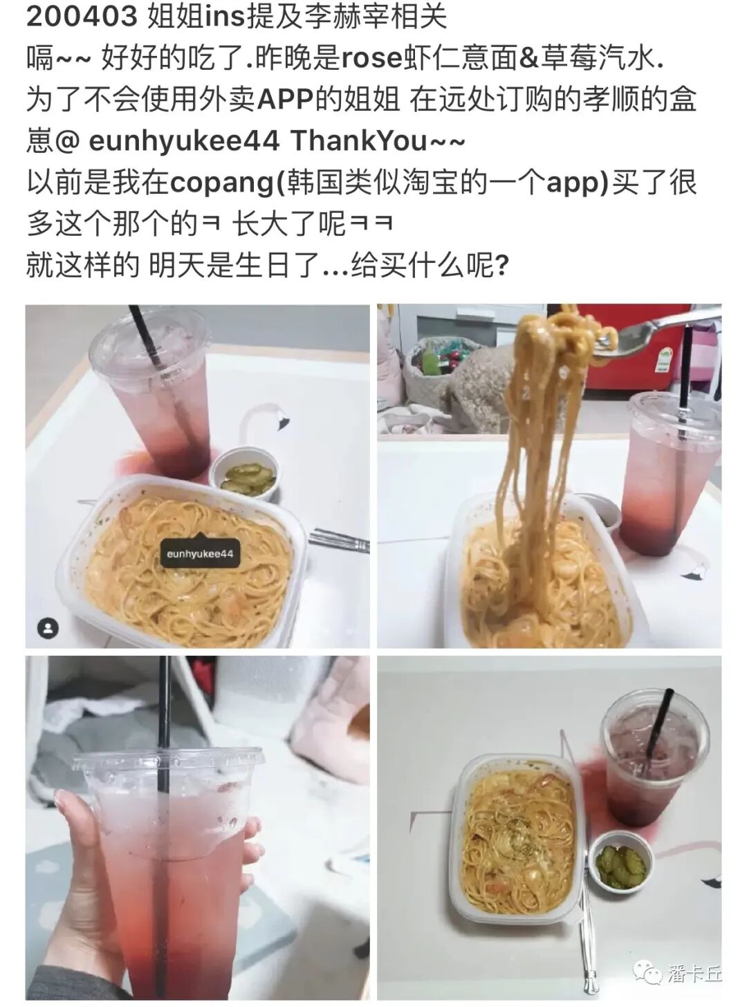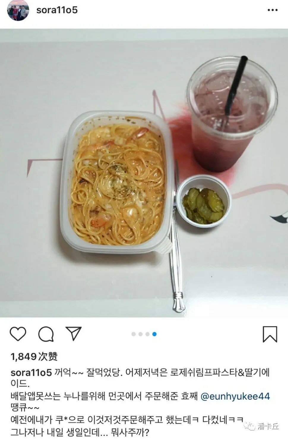 前天,赫宰姐姐素拉姐发INS,写道:“为了不会用外卖app的姐姐,在很远的地方点餐的盒仔。这是以前我在某平台上为他点过的,长大了呢~”