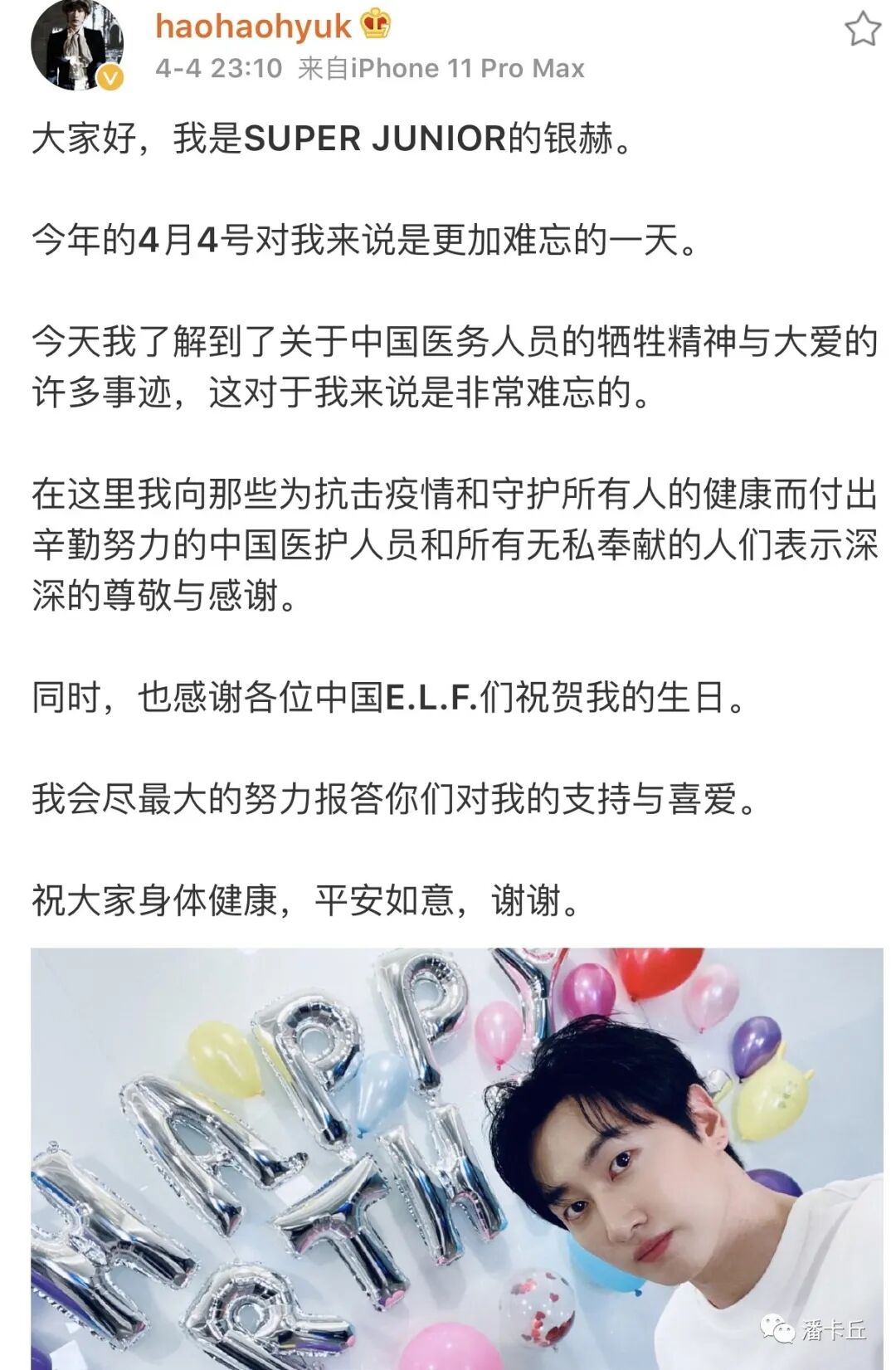 他在韩国时间4月5日0:10分发了条微博,内容如下: