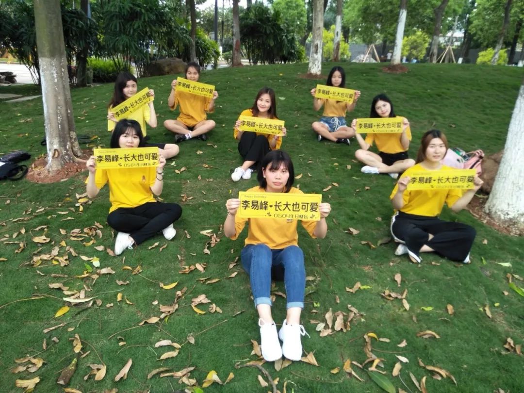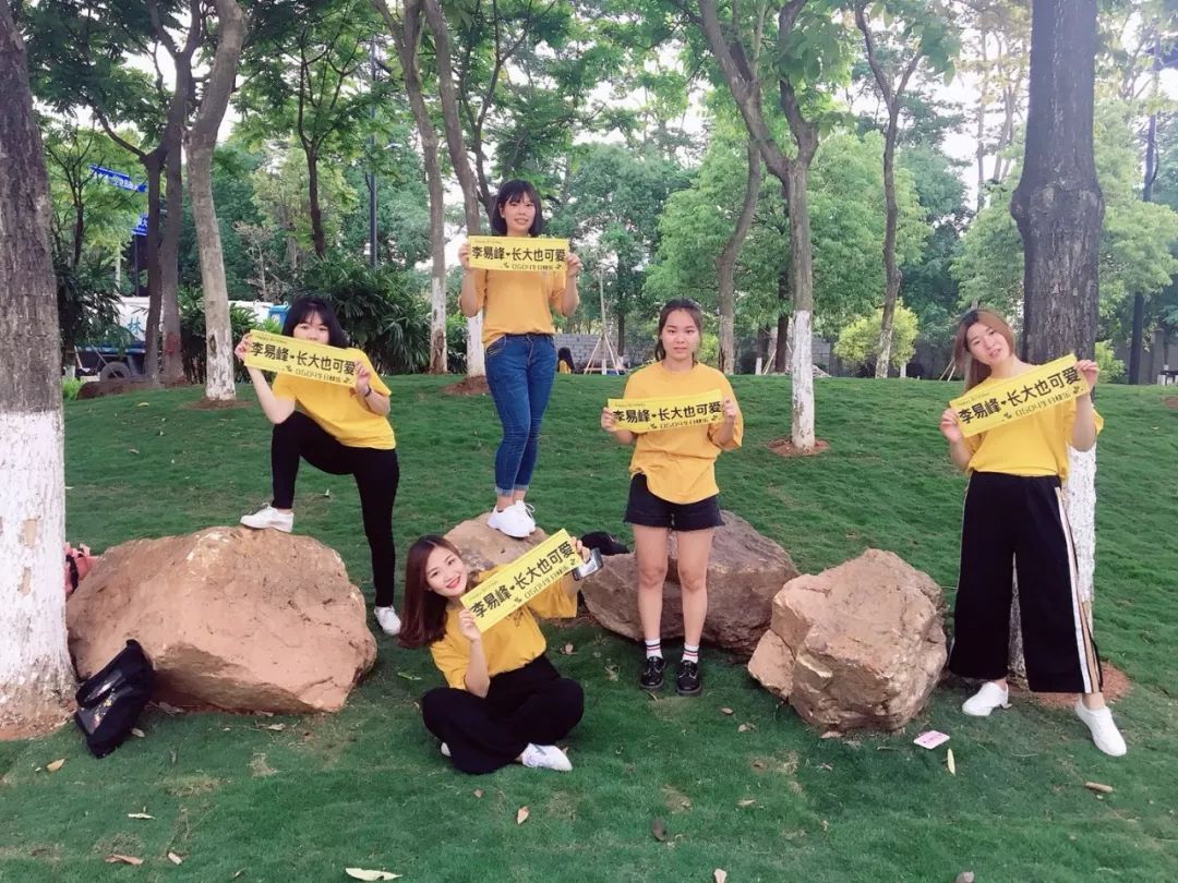 走在路上,一群穿着黄色衣服的蜜蜂们,成为今天最美的一道风景线,路人都会在我们的身上停留几秒钟,今天最好看的颜色莫过于蜜蜂黄,今天最好听的莫过于“李易峰,长大也可爱”