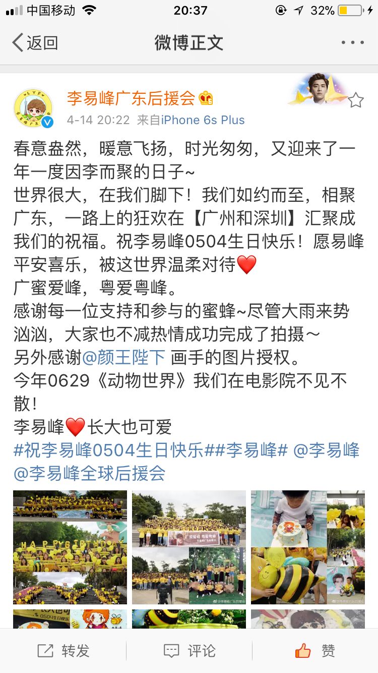 今天·,是我喜欢李易峰那么多年来第一次参加李易峰的生日会录制视频活动,以前看李易峰的生日会的视频的时候,每次都会看到来自不同地方的蜜蜂给峰峰录制的视频,那个时候就觉得“哇,好好呀,好希望有一天我也在视频当中,好希望有一天我也是那众多给李易峰送祝福的其中之一”,终于,在今天,我似乎实现了自己一直以来所希望的事情。也许在很多人眼中,会觉得很可笑,但我觉得,喜欢李易峰并且为他拍视频并没有什么可笑的,我喜欢就好哈哈