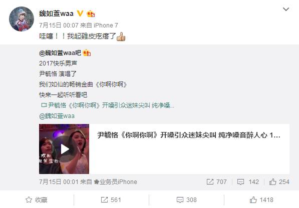 最近在微博上大火的快乐男声尹毓恪,凭借魏如萱的一首《你啊你啊》俘获了众多少男少女的心,还被自己的爱豆——也就是这首歌的原唱魏如萱在微博上翻牌了,并直呼“唱到全身起鸡皮疙瘩!”