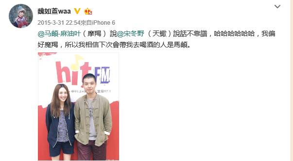 除了宋冬野以外,魏如萱和马頔的交情更是惹得人浮想联翩,两人除了在微博上玩笑互动之外,去年的上海简单生活节更是牵手合唱了脍炙人口歌曲《晚安晚安》,现场深情互动惹得粉丝尖叫连连。