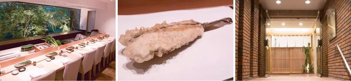 特点:主打天妇罗。如果客人要求也会提供天妇罗蘸汁,但这家店还是会尽量劝客人只搭配盐来享用天妇罗,因为这样才能更好地体会食材本味。
