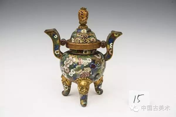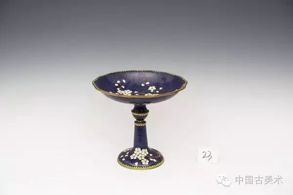 现代兰地如意纹折枝梅花景泰蓝高足盘