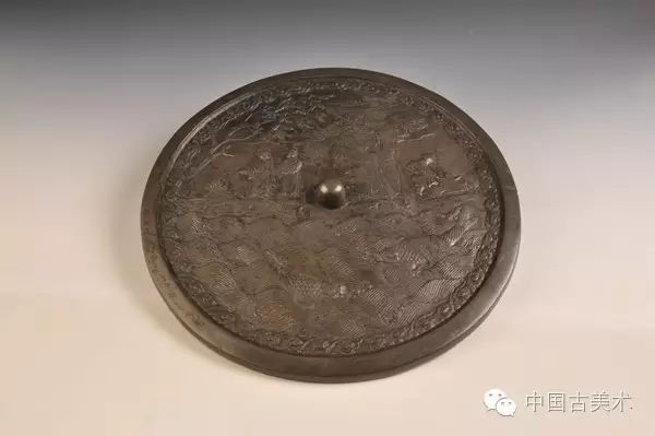 金代山水人物故事镜是我国目前保存最为完好的金代铜镜,镜面光亮,呈银白色,球状钮,做工十分精致。
