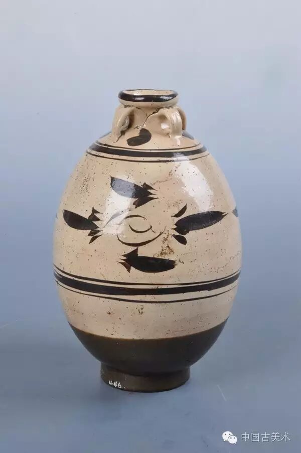 镜背图案分为上、下两部分,上部分是一幅以山水画为背景的人物故事画面,在山脚下以为头戴席帽,身穿布袄的农夫手持锄头正在田间耕作,画面左侧是枝叶茂盛的大树,树下是两位身着长袍的官员正指着土地说着什么,这一图案表现的是中国金代官员参加春耕时的场景。据史书记载,每年的正月元日,皇帝都会与众位大臣拿着农具到田间耕作,象征新的一年从农事开始,皇帝亲自下地耕作,各级官员更是不敢懈怠,他们与农民一起在田间劳作,铜镜上的图案表现的正是官员们春耕的图景,它还表达了一年之计在于春的寓意。铜镜背面下半部分的图案为一对雌雄鲤鱼正在河水中相互追逐、嬉戏,他们张嘴鼓腮,展鳍摆尾,掀起朵朵浪花。