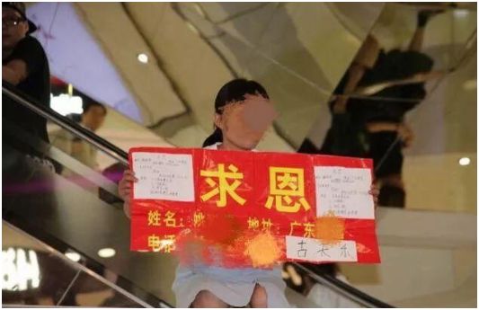 举着一张大大的红色“求恩”牌,