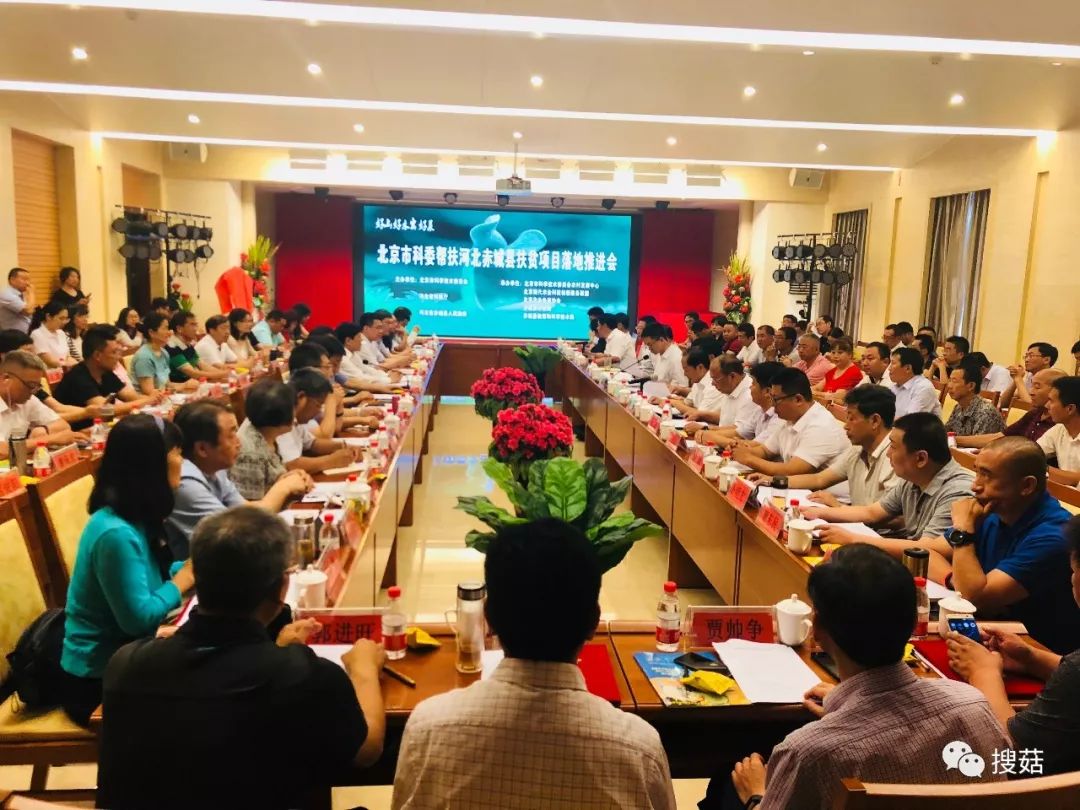 北京市科委对口帮扶河北赤城县扶贫项目落地推进会以“科技助力结对帮扶 产业兴旺 脱贫攻坚”为主题,邀请了北京市科学技术委员会、北京农业电商协会、河北省科技厅、张家口市政府、赤城县政府的有关领导及部门代表出席。本次会议还邀请了5家高校、科研院所和14家联盟会员单位负责人、赤城有关企业及合作社代表和贫困村书记(主任)代表参加,共计90余人次。