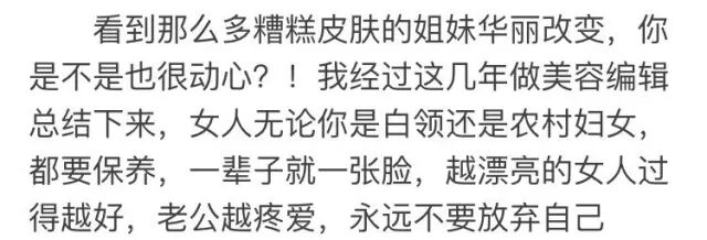 宝马车不保养也会提前报废,更何况是我们女人这张脸!美丽永远是爱情和婚姻的保鲜剂,聪明的女人快速添加:微信号 yanci52o