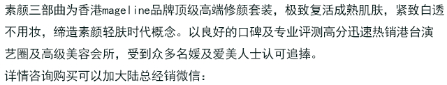 不看不知道,深扒以后才知是近两年红遍娱乐园的“素颜三部曲” ! 现在圈内很多明星都暗自使用 , 像李小璐,秦岚 ,李湘 ,马苏,陈伟霆,叶一茜,金晨 ,艾玛好多,小编我真担心她们是不是用了私下聊天团购的呢,呵呵。